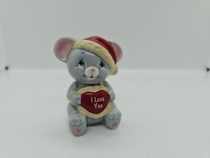 Vintage Russ Berrie “I Love You” Santa Mouse Ceramic 2.5”