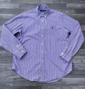 Ralph Lauren Men’s Button Up Shirt 120's Poplin Purple Blue Striped Size Large