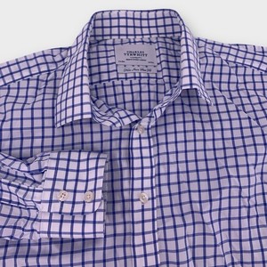 Charles Tyrwhitt 17.5 x 36in Slim Fit Dress Shirt Non Iron Blue Windowpane Check
