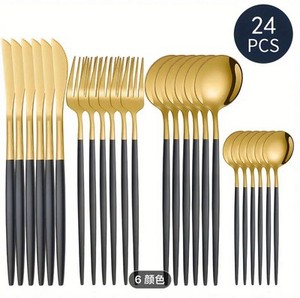 24 Piece Portuguese Gold and Black Cutlery Set(32)