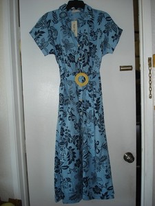 NWT Violet Skies Women Button Midi Maxi Long Cotton Flower Belt Shirt Dress M