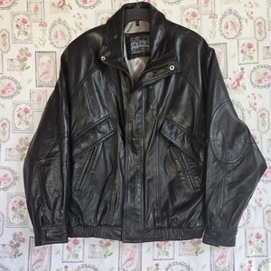 VTG Collezione 100% Leather Jacket Mens Sz L Black Biker Bomber Coat Moto Style