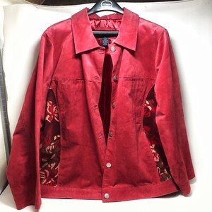 Denim & Co Red Floral Suede Leather Jacket Size 2X Button Adjustable Waist