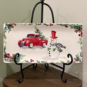 Gibson Elite Christmas Decorative Platter Red Truck & Snowman (Has Crazing)