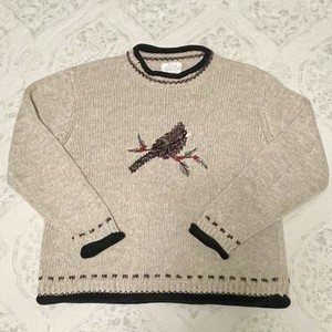 Vintage Christopher & Banks Women's Cardinal Sweater M Beige Embroidered 2005