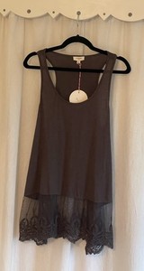 Umgee Women’s M Charcoal Gray Tunic Tank Lace Hem Stretch Boho Whimsigoth