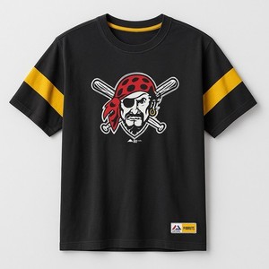 Pittsburgh Pirates MLB T-Shirt Men’s Large Black Yellow Graphic Logo Majestic