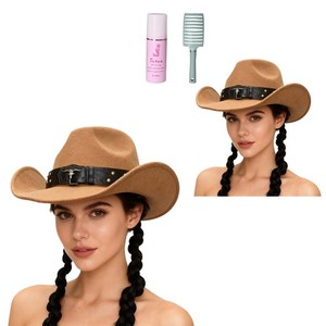 Women Western Felt Roll Up-Brim Cowboy Hat w/Detachable Long Braid Hair Care Kit EUR 34.13 to EUR 41.91