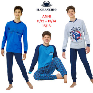 Pigiama ragazzo bambino cotone estate manica lunga IL GRANCHIO da Anni 11 a 16