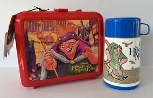 Vintage Lunch Box Disney's Hunchback Of Notre Dame Red Plastic With Thermos