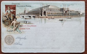1893 CHICAGO WORLD'S COLUMBIAN EXPOSITION-MACHINERY BLDG-EAGLE-ANTIQUE POSTCARD