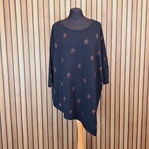 Phase Eight Jumper Black Gold Star Womens Small Oversize Batwing Asymmetric