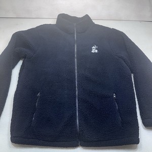Disneyland Sweater Mens Large Black Sherpa Embroidered Mickey Mouse