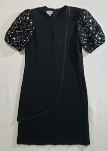 Vintage Leslie Fay Black Knit Sweater Layer Puff Sequin Sleeves Dress Sz 16