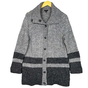 Talbots Cardigan Sweater Womens XL Gray Wool Blend Colorblock Cottagecore Button