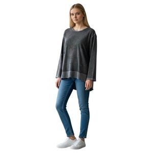 Soft Surroundings Tunic Top Petite XL Gray Jersey Knit Asymmetrical Hem LS