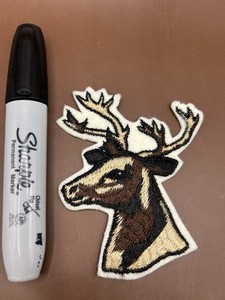 BUCK DEER Large Vintage Embroidered on Felt Sew On Animal Patch New Old Stock