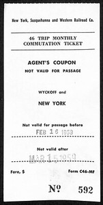 1959 New York, Susquehanna and Western Railroad 46-Trip Monthly Ticket #592