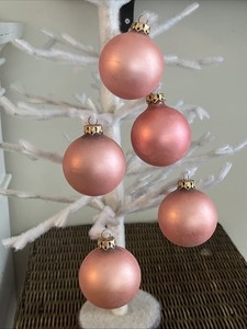 Pale Pink 6 Flocked Velvet Retro Style Christmas Ball Ornaments Gold Glitter