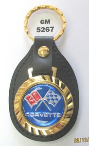 C1 CORVETTE Royal Classic 5261 Black Leather Gold V Gold Tone Key Ring 1959 1960