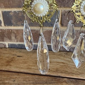 Chandelier Christmas Ornaments Brass Faux Pearl Clear Acrylic Vintage BRN