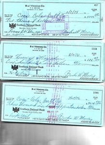 100 ASSORTED CHECKS B & I VENDING CO. SOME SIGNED BY BANKS MONEY. MAYODAN N.C. EUR 8.630 bids7d 15h 3m