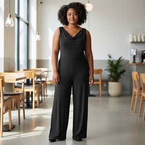 Yumi Kim Womens 3X Black Sleeveless Cowl Neck Wide Leg Jumpsuit Plus Size