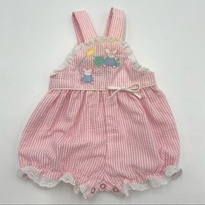 Vintage Baby Overalls Pink Stripe Embroidered Animals Balloon Lace 90s Romper