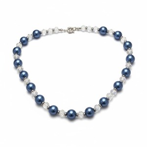 Vintage Faux Pearl & Clear Faceted Crystal Bead Choker Necklace Navy Blue