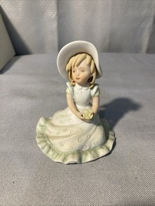 Vintage RR Roman Porcelain Girl Figurine White/Green/Yellow 3.25 in
