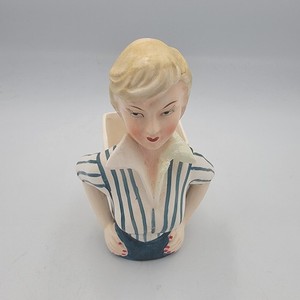 Vintage Ceramic Lady Head and Torso Vase Glamour Girl 5"