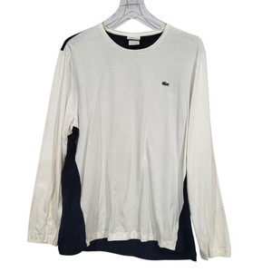Lacoste SZ 8 Long Sleeve T Shirt Cream Navy Blue SEE MEASUREMENTS