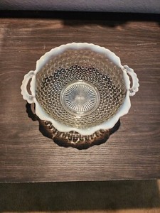 Anchor Hocking Moonstone Pattern Glass Bowl Ruffled Edge Opalescent Hobnail