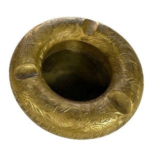 Vintage Brass Ashtray India Etched Floral Round Cigarette Holder Home Decor