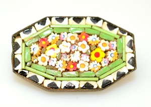 VINTAGE HANDCRAFTED MOSAIC LARGE PIN WITH FLOWERS - MADE IN ITALY