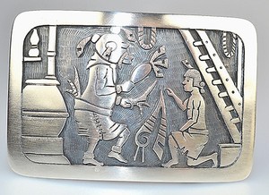 VTG NATIVE AMERICAN HOPI EDDISON WADSWORTH STERLING SILVER KACHINA BELT BUCKLE