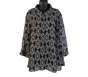 Simply Emma Women's Full Button Blouse Plus 3X Black White Geo Print Lightweight