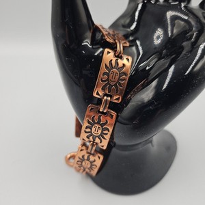Copper Bracelet Sun Face Engraved Etched Link Southwestern Unique Sun 7" VTG