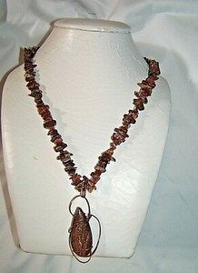 Han Crafted Wire Wrapped Goldstone Pendant Necklace & Earrings w Poppy Jasper