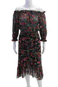 Saloni Womens Off Shoulder Long Sleeve Floral Embroidered Dress Multi Size 4