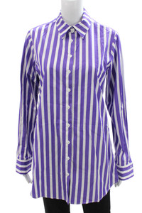 Harshman Women Purple Cotton Striped Button-Up Blouse Long-Sleeve Size S