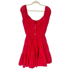 Vintage Blue Dress Flare 9/10 Red Mini Tiered Button Front Short Puff Sleeve