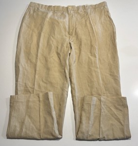 Polo Ralph Lauren Pants Men Size 42X30 Beige Linen Silk Preppy Flat Front Beach