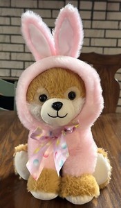 Hug Fun Brown Dog Plush in Pink Bunny Suit, 9in x 16in