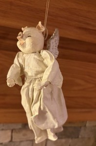 Pig Angel in Ivory Gown with Wand Christmas Tree Ornament 8" paper mache Y2K