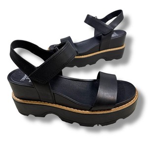 Sorel Joanie IV Black Leather Ankle Strap Wedge Platform Sandals Women’s Size 7