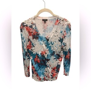 Talbots Floral Button-Up Cardigan Blue Pink Women’s Size XS