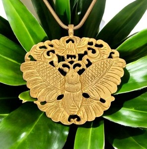 Vtg Signed KJL Kenneth Jay Lane Large Luna Moth Butterfly Pendant 24" Necklace