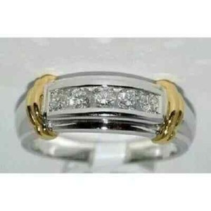 14K Two Tone Gold Plated 2 Ct Round Lab-Created Diamond Men's Wedding Band Ring