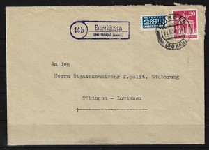 L314) All. Occupation Bizone No. 85 letter post office Emerkingen about Ehingen